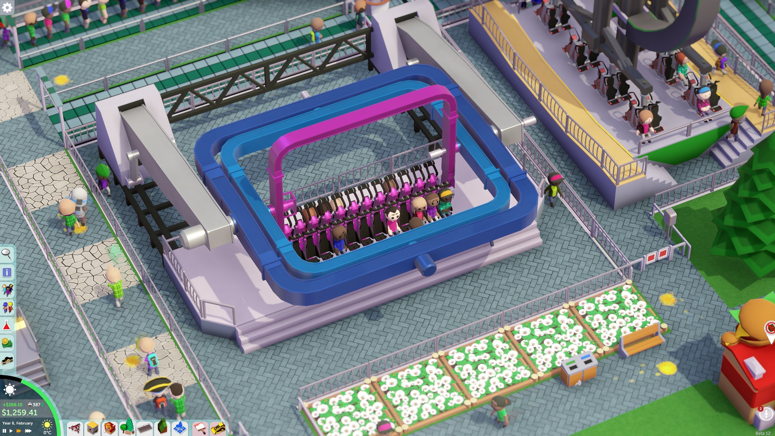 В Parkitect вы создаёте грандиозные американские горки, водные аттракционы, тематические зоны и управляете всем: от цен на хот-доги до зарплаты уборщиков. Реалистичная физика, тысячи декоративных элементов, поддержка модов и кооператив до 8 человек — всё это в одной последней версии. Красивая пиксельная графика, живой саундтрек и детальная проработка каждого посетителя создают невероятную атмосферу праздника.